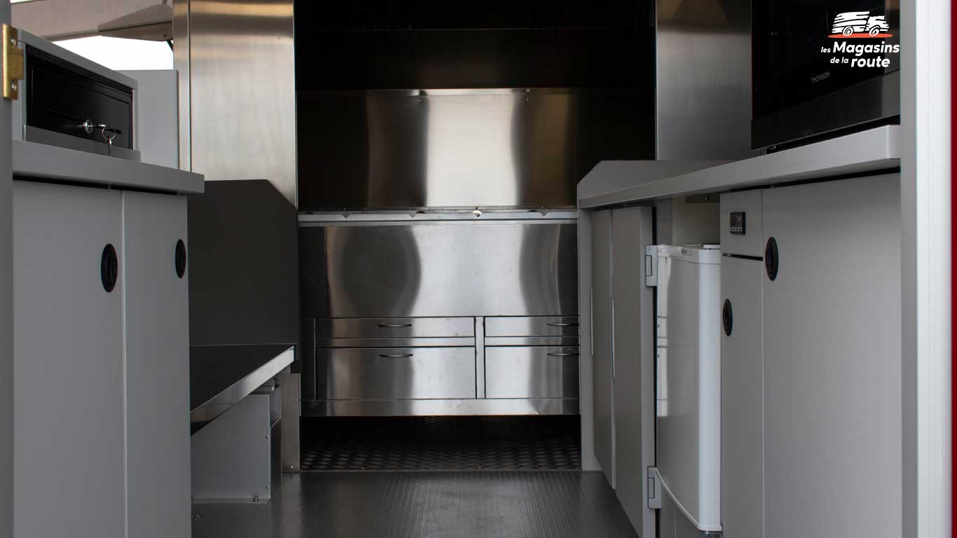Cette conception sur mesure vous fait gagner un temps précieux lors des préparations et de la vente. Les matériaux utilisés comme l’inox brossé résistent à une utilisation intensive quotidienne et simplifient le nettoyage après chaque service. Cet investissement dans un véhicule personnalisé est rentable sur plusieurs années.